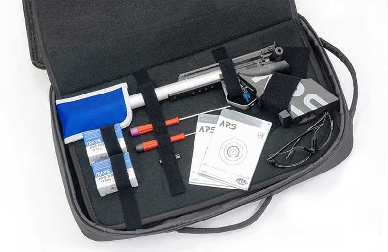 生地には、耐久性・防水性に優れた「ナイロン1680D PUコーティング」を施し、アクティブな移動にも耐えうる堅牢性を実現しました。背面およびハーネス部分には通気性の高いメッシュ素材を採用し、長時間背負っても蒸れにくく、夏場でも快適です。サイドには手持ちに便利なハンドルを配置し、移動時にはブリーフケースのように持ち運ぶことも可能。また、スーツケースのハンドルに通せるセットアップベルトも搭載しており、出張や遠征時にもスムーズな移動をサポートします。内部の収納には、APS-1 グランドマスター以外にもAPS-3を2丁同時に収納可能。競技用エアースポーツガンを安全かつスマートに収納できる設計です。また、一部CA870シリーズの収納にも対応しています。さらにフロントポケットには、APSカップや公式競技会で使用するパーソナルデータなどの書類が収納可能です。ビジネスシーンにも対応する収納力と機能性を備えています。