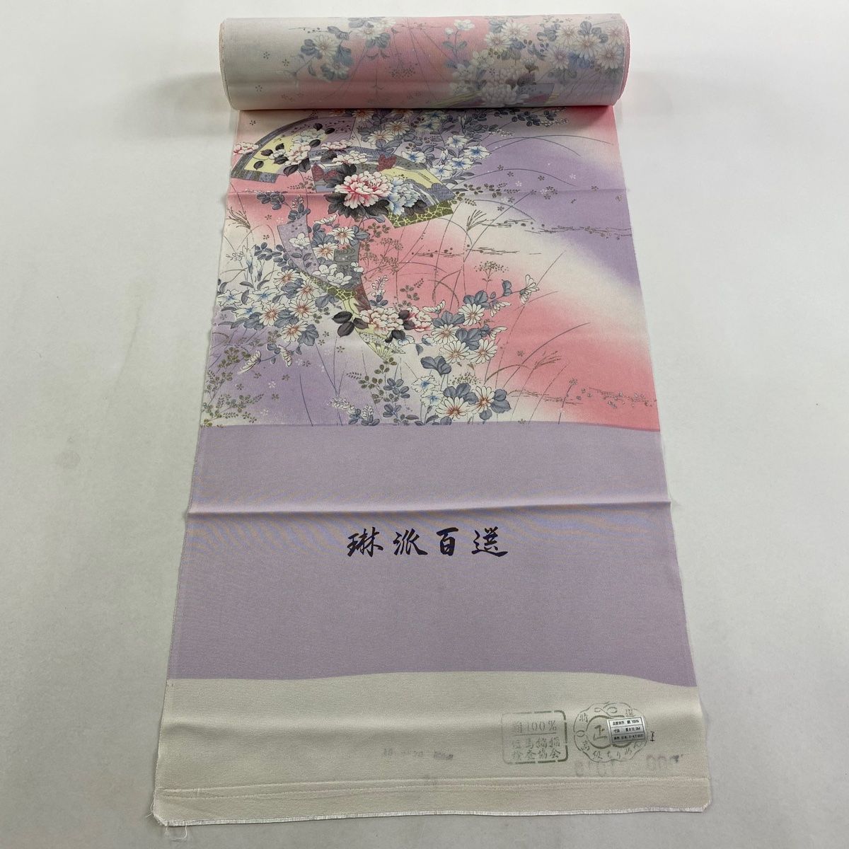 反物 秀品 小紋 扇面 草花 金銀彩 ぼかし ピンク 正絹