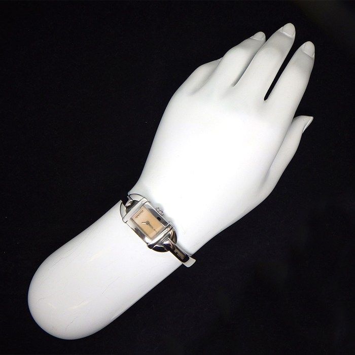 グッチ GUCCI 腕時計 バングルウォッチ 6800 L ストライプ ギョーシェ レクタンギュラー ブラウン文字盤 SS クオーツアナログ