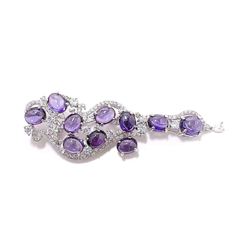LAVINA カボション パープル キュービックジルコニア ブローチ ロジウムメッキ真鍮。 キュービックジルコニア