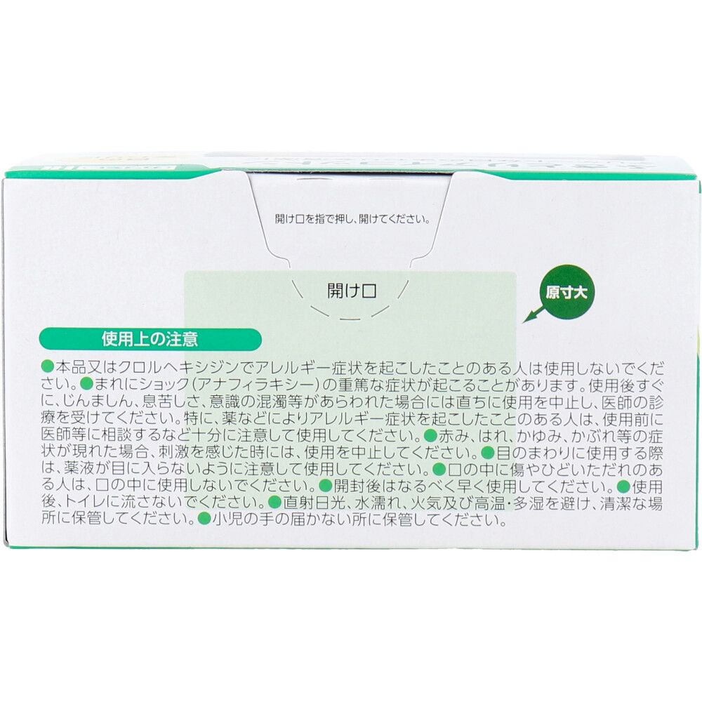 クロルヘキシジングルコン酸塩として0.02%水溶液、医療脱脂綿