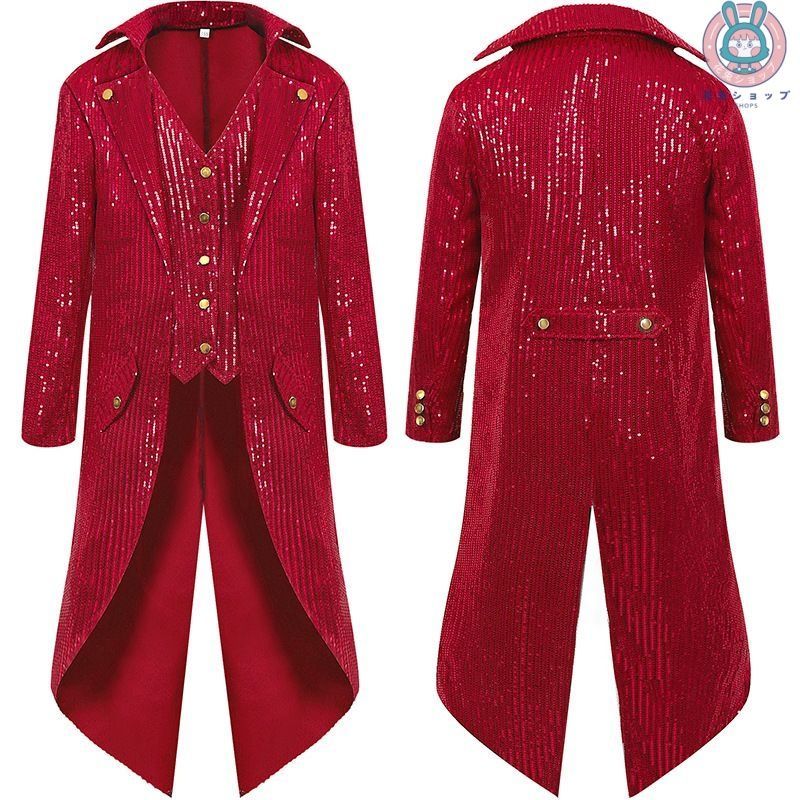 25年 メンズコスチューム 中世 ヴィンテージ パンク スチームパンク テーラードジャケット 中長丈 黒色 クラシック フォーマル