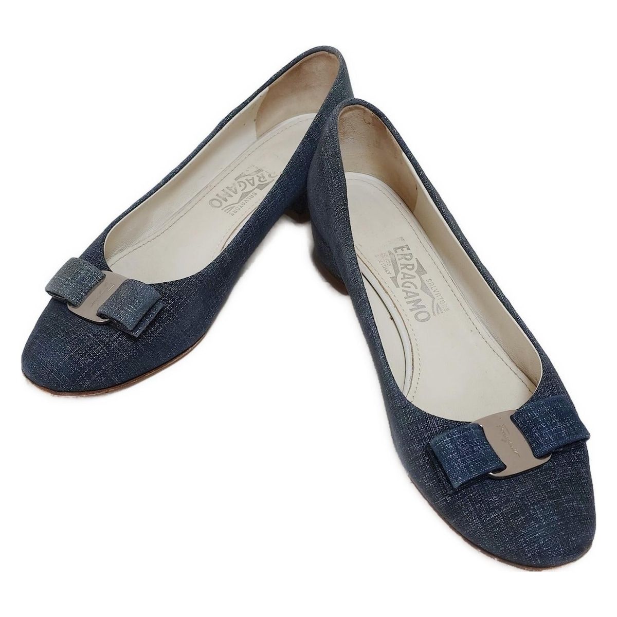 SalvatoreFerragamo サルバトーレフェラガモ パンプス 7 1 2 D レディース - ネイビー×白 ヴァラ