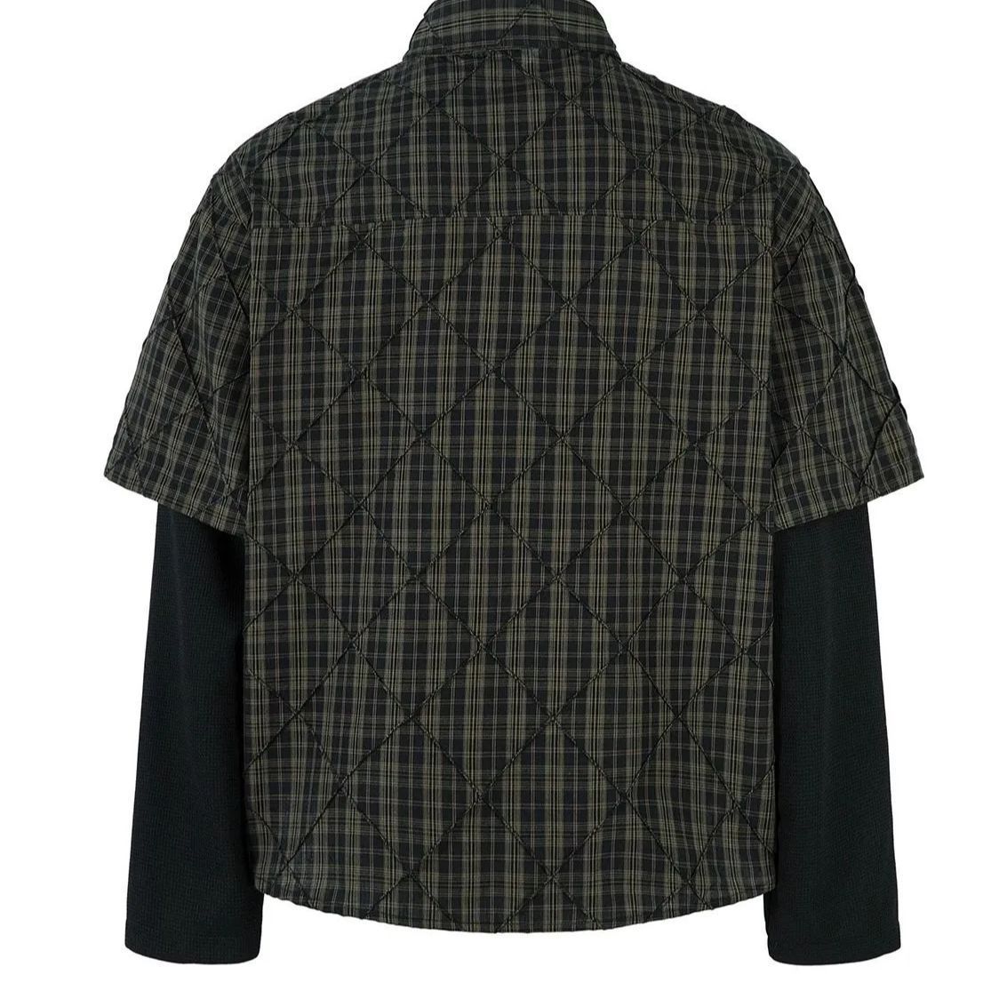 h アメリカンヴィンテージ風 偽二枚重ね パネル切替 チェック柄 長袖シャツ|ユニセックス 2025 INS トップス