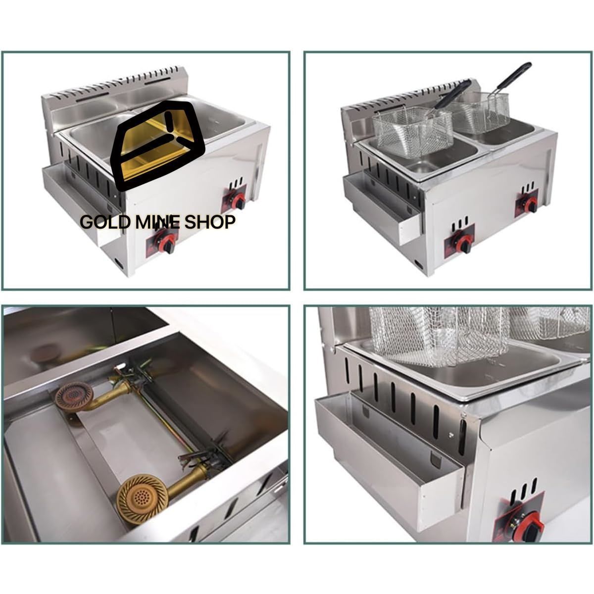 ディープフライヤー 業務用ガスフライヤー 6 L二槽式 大型卓上フライヤー ガスフラフライヤー 手羽先の揚げ 揚げ物器 62 5 47 40 cm