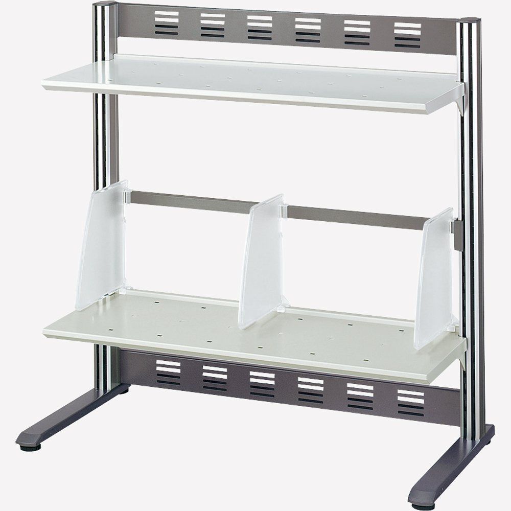 ●材質/仕切板:ABS、アジャスター(樹脂部):PA6、ストッパー:PC、棚板・背板:スチール、脚ベース部:アルミダイカスト、支柱:アルミ押出し型材(アルマイト仕上げ)