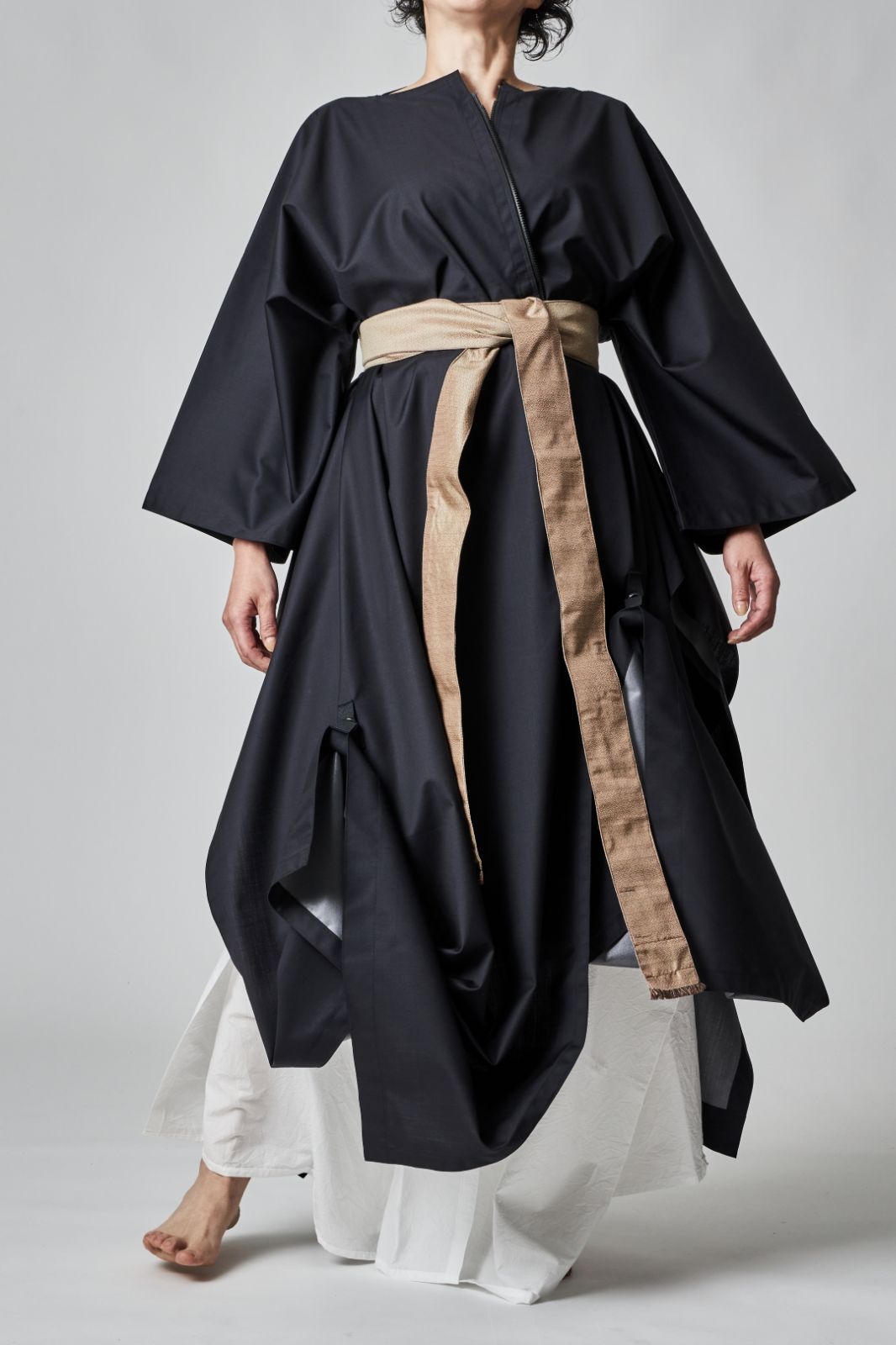 Kimono Sleeved Long Jacket Made of waterproof wool with obi Lettre d amour 002 K