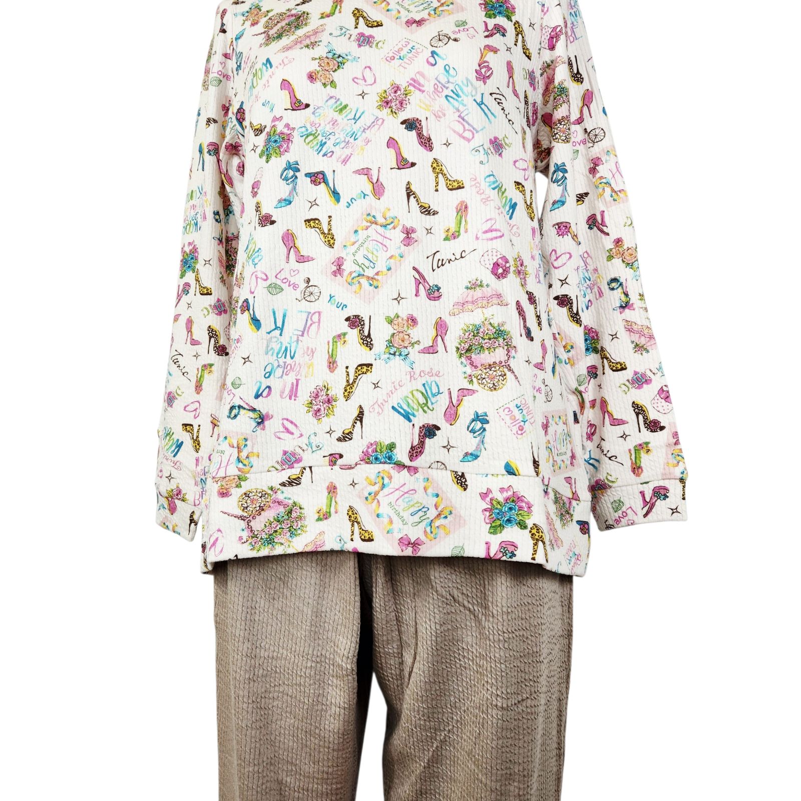 鴨居羊子パジャマ ♥ TUNIC 秋物 長袖パジャマ モックネック ピーチ起毛ハーピーヒール 43406 ベージュ色日本製