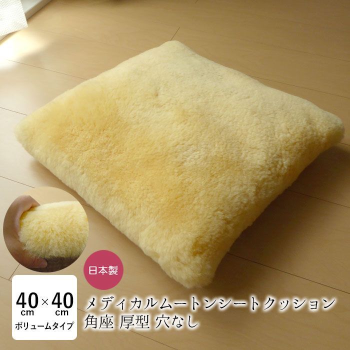 メディカルムートン シートクッション 角座厚型 穴なしタイプ 約40cm×40cm