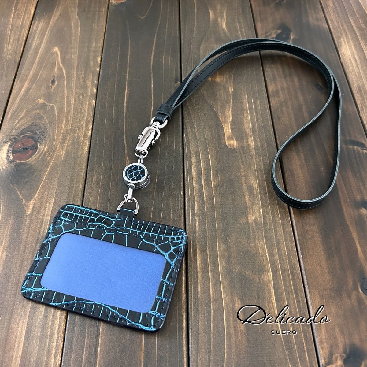 クロコダイル 目地染め IDホルダー ブラック ブルー