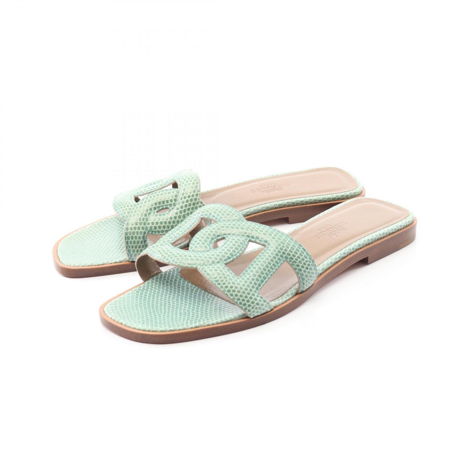 エルメス HERMES ミュール オマハ グリーン エキゾチックレザー サンダル レディース A