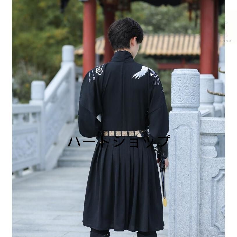男性用 漢服 中華 コスプレ衣装 チャイナ服 パンツセット ミモレ丈 交差襟 長袖 黒 メンズ 中国 古代 時代劇 仮装 変装 華流 コスチューム