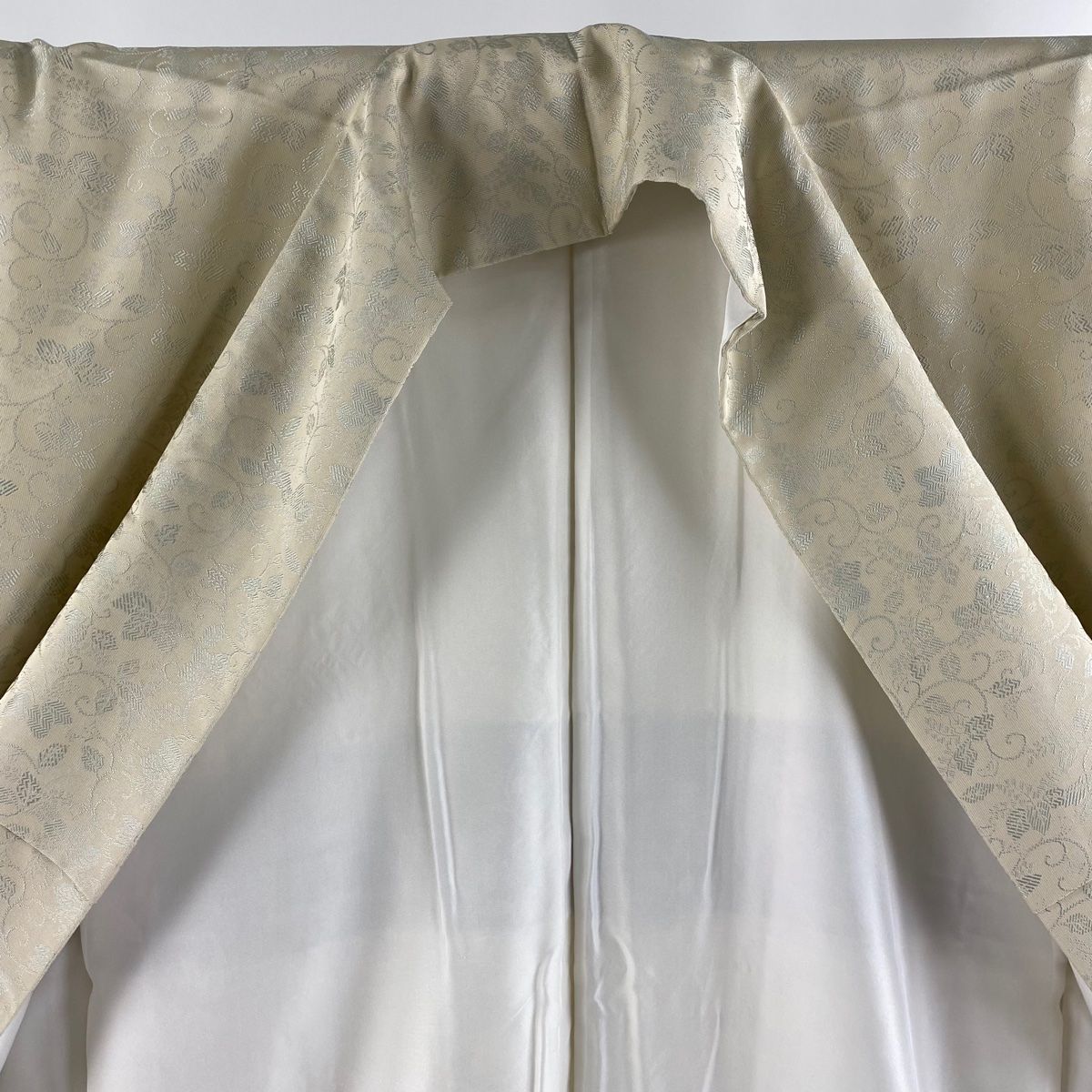 お召 身丈160 cm 裄丈66 M 袷 袋帯セット 桐唐草 ベージュ 正絹 秀品