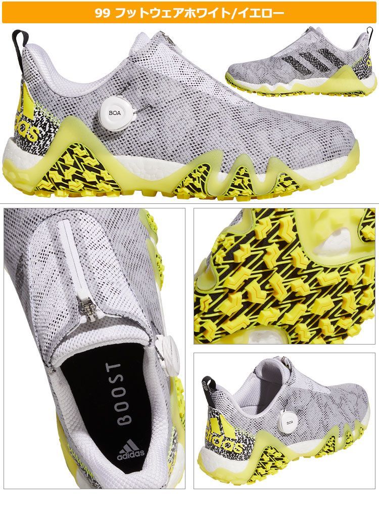 仕入品 24.5~26.5 cm adidas アディダス ゴルフシューズ LVL 63 コードカオス 22 BOA ボア フットウェアホワイト イエロー EE相当 スパイクレス メンズ