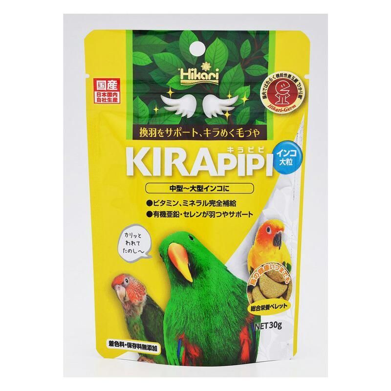●ビタミンやミネラル、ひかり菌などインコの健全な成長に配慮したペレット飼料。かじって食べれる半円形。