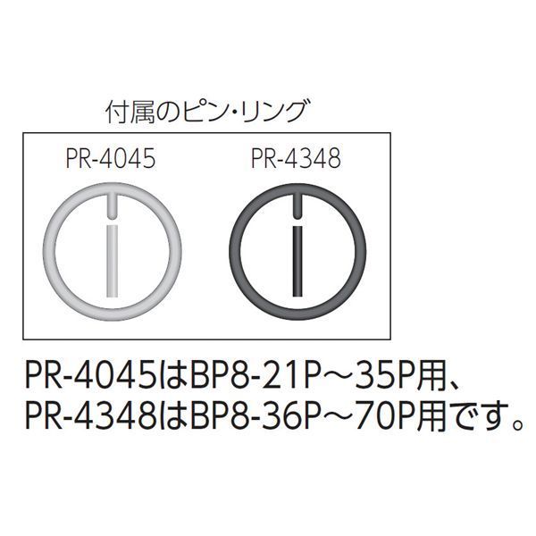 ※黒色のリングには黒色のピン、灰色のリングにはシルバーのピンを組み合わせて下さい。