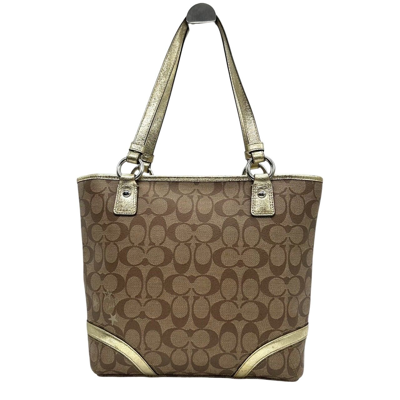 ♥級 COACH コーチ トートバッグ F 18853 シグネチャー スター 星柄 PVC レザー ブラウン ゴールド レディース A 4収納可 肩掛け チャーム付 通勤 通学 エレガント キュート 大容量 s 49