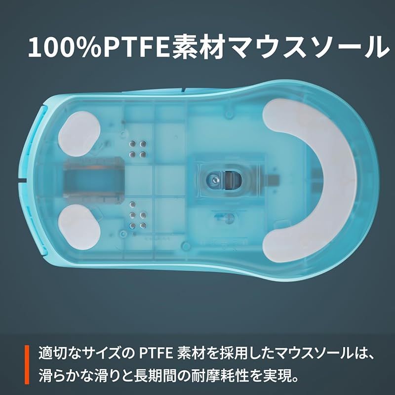 【100%PTFE素材マウスソール】適切なサイズのPTFE 素材を採用したマウスソールは、滑らかな滑りと長期間の耐摩耗性を実現。