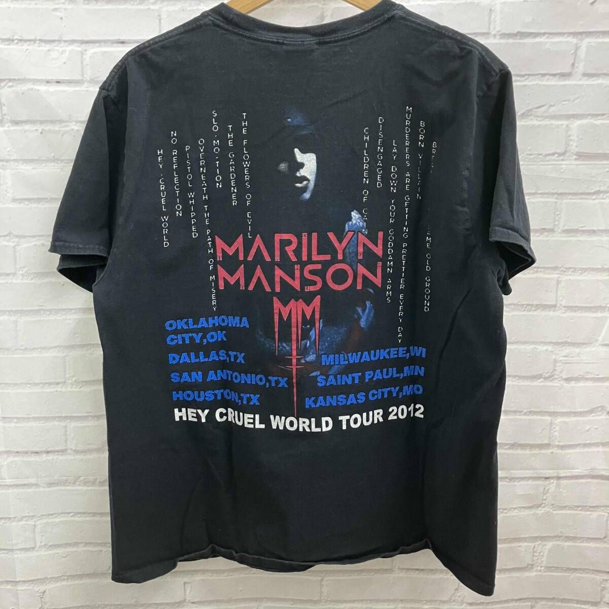 MARILYN MANSON マリリンマンソン 半袖Tシャツ HEY CRUEL WORLD TOUR 2012 bootleg 古着 サイズL ブラック