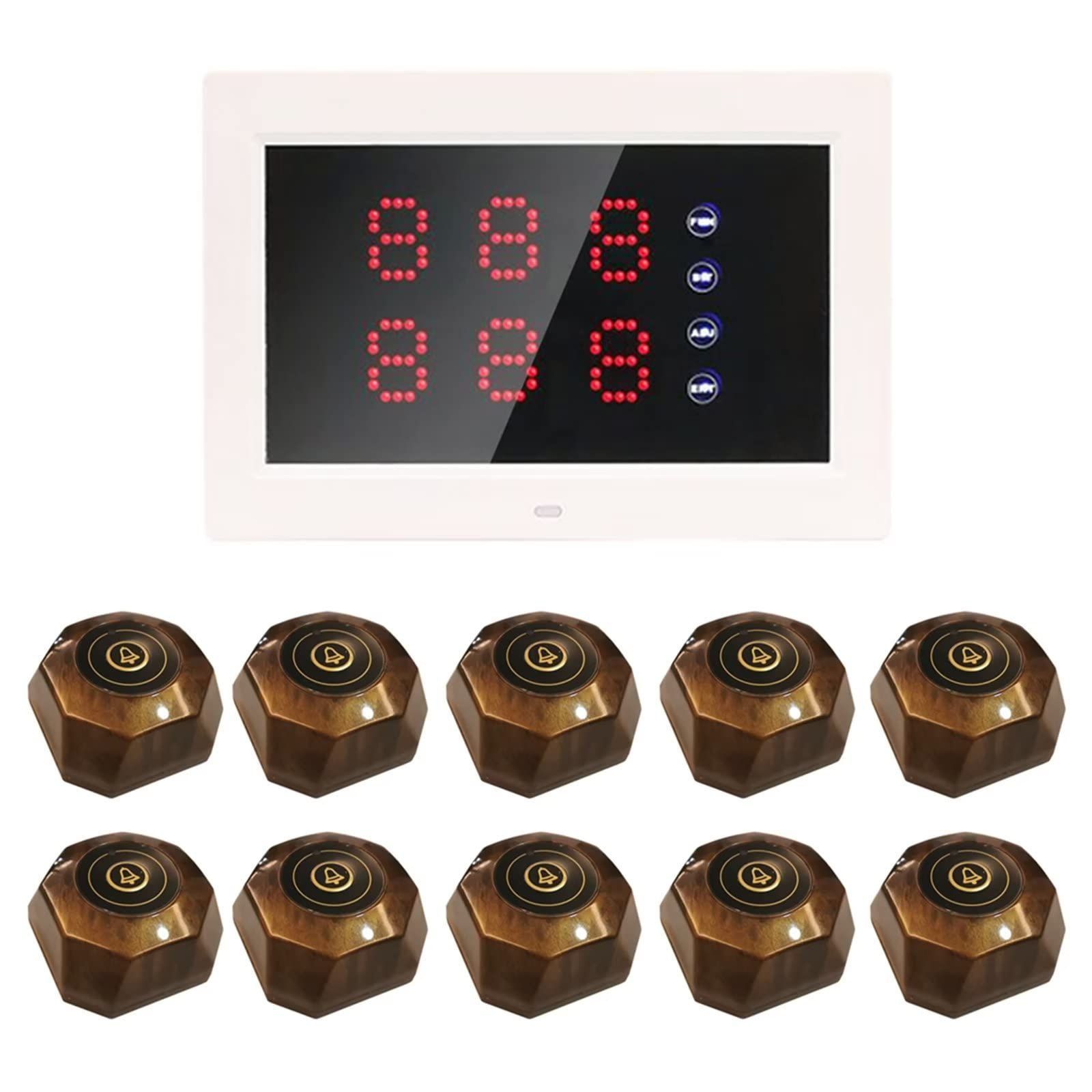 FLYDOG 呼び出しベル 飲食店 呼び出しチャイム 呼び鈴 呼び出し受信機 ワイヤレス呼び出しベルお客様10個コールボタン卓上呼び出しボタン 無線 高感度 飲食店居酒屋教会 [本体(200D)+子機10台-X1]
