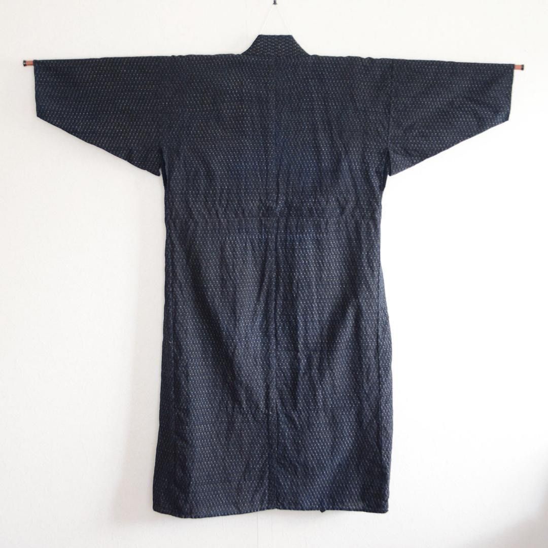 藍染書生絣風着物 古布リメイク素材 大正昭和ジャパンヴィンテージ リメイク素材 Indigo Dyed Shosei-Style Kasuri Kimono Japanese Vintage Fabric for Remake