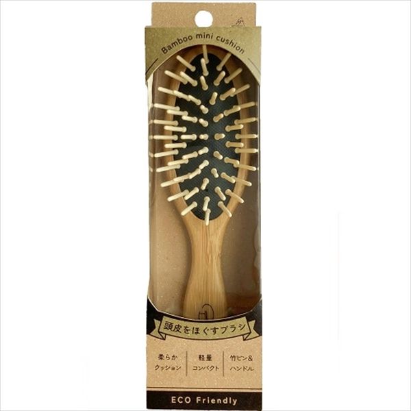竹製ピンと竹製ハンドルを使用したSDGs取組みヘアブラシです。天然竹製で静電気が起きにくく、適度なクッションで頭皮を刺激します。