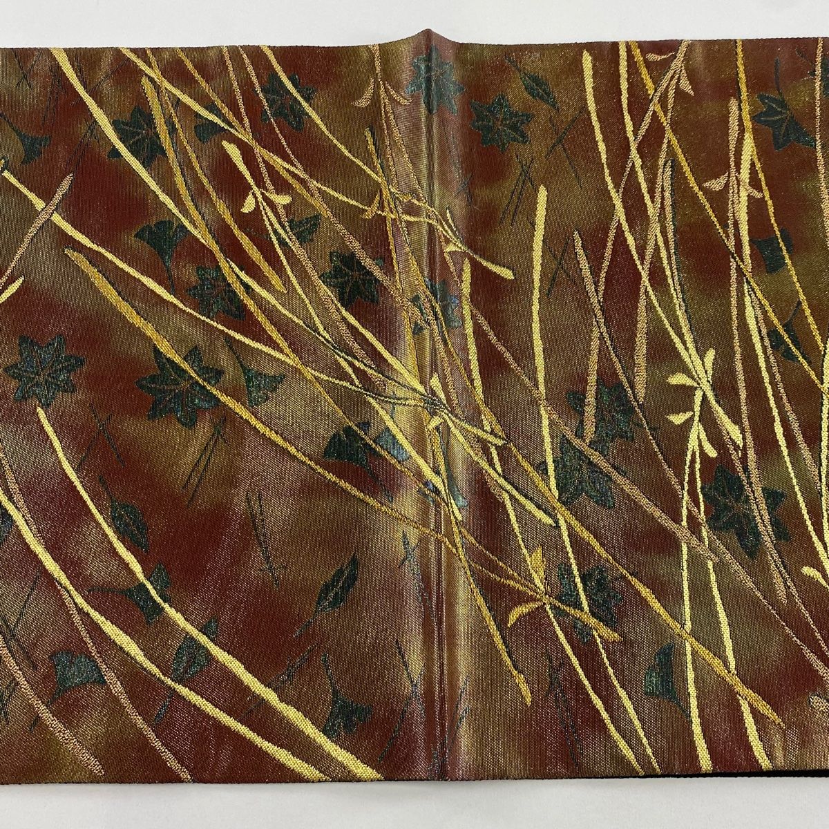 袋帯 秀品 吹き寄せ 霞 箔 焦茶色 六通 正絹