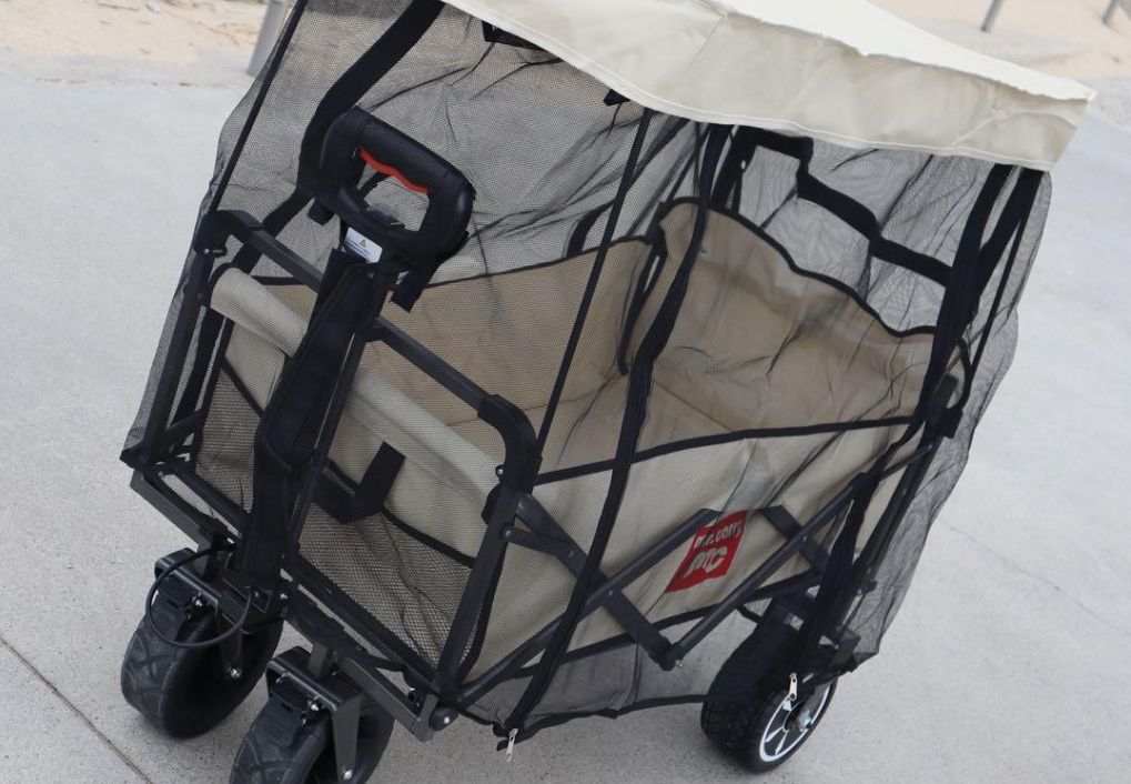 唯一の電動キャリーワゴン mr carry 積載量100 kg可 PSE取得済 折りたたみ式 電動アシスト 悪路対応 キャンプ アウトドア ピクニック 500 Wモーター搭載 最大6時間駆動 大容量 女性でも楽々 ブラック ベージュ