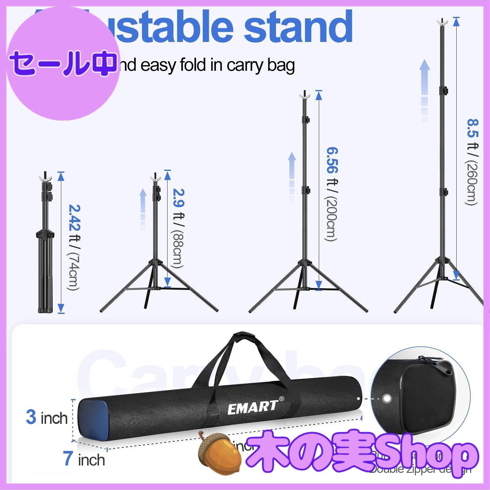 EMART 背景スタンド 撮影スタンド 260x300cm 幅、高さ調節可能 背景布/グリーンバックスタンド 生放送、web会議、ビデオ通信、動画などに適用 グリーンバック、背景紙、クロマキー合成、テレワーク、オンライン授業、オンライン飲み会などに大活躍(サンドバッグ*2、スプリングクランプ*8と専用収納袋*1)