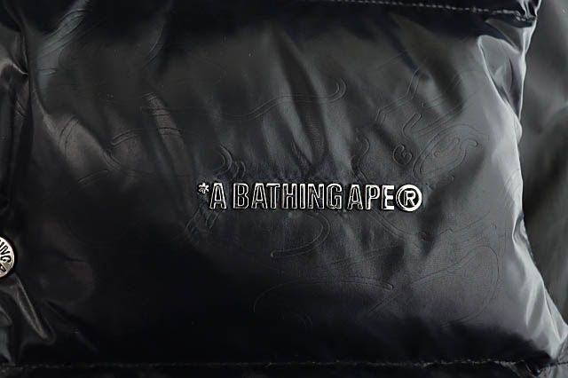 【商品名】アベイシングエイプ A BATHING APE LINE CAMO DEBOSSED NYLON DOWN VEST ライン カモ デボス 総柄 ロゴ ナイロン ダウン ベスト 001DNK801306M L 黒ブラック ブランド新品ベクトル 新品251103