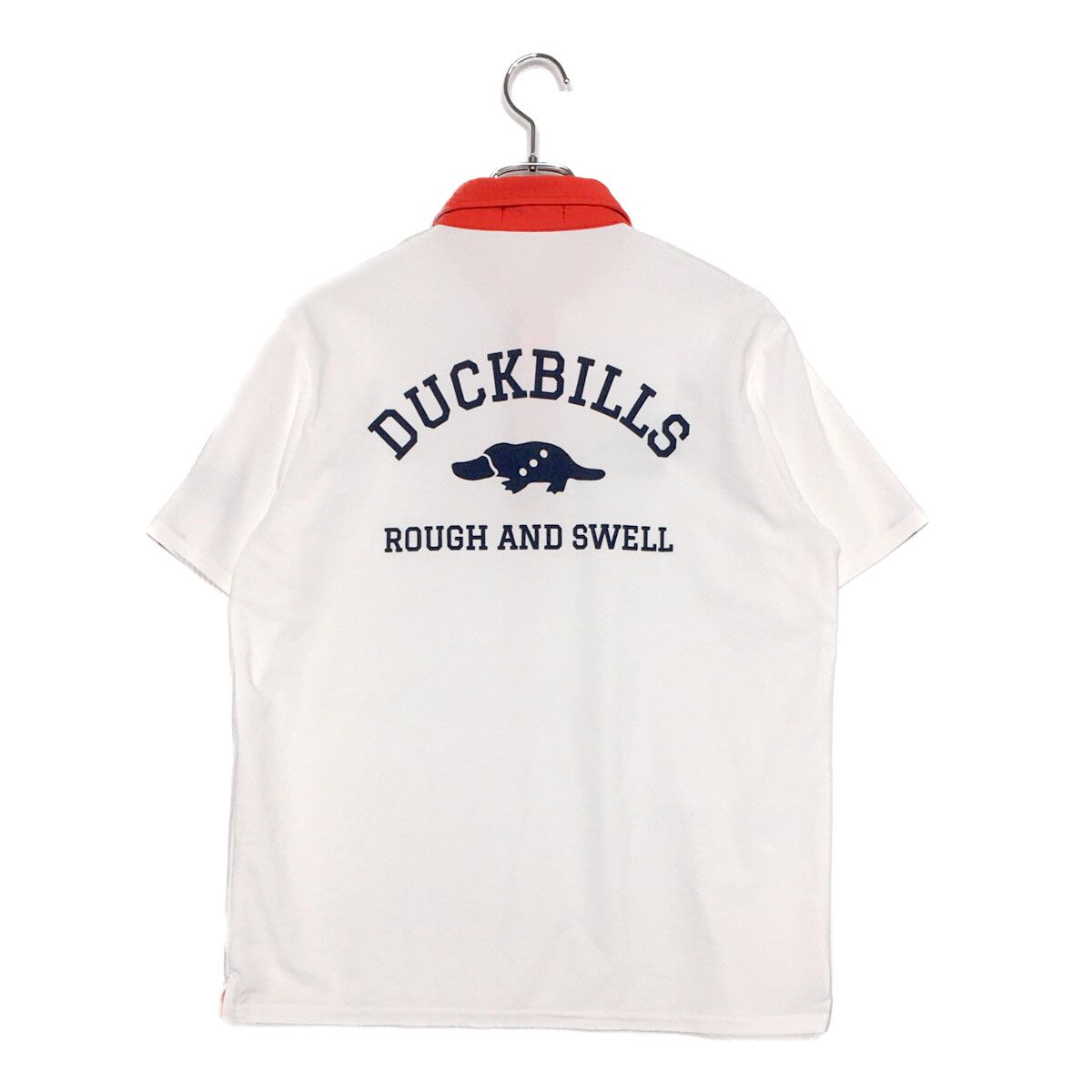 メンズ ラフ&スウェル rough-swell 半袖ポロシャツ L 白×オレンジ ホワイト バックプリント