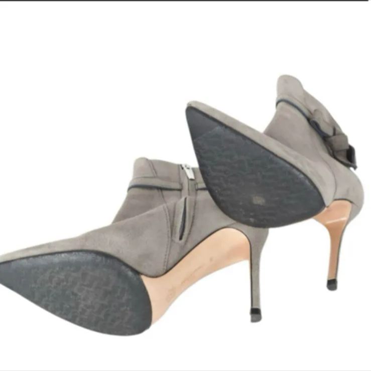 Gianvito Rossi ジャンヴィト ロッシ ショートブーツ スエード リボン ピンヒール 37 23.5 cm グレー 定価¥150 000
