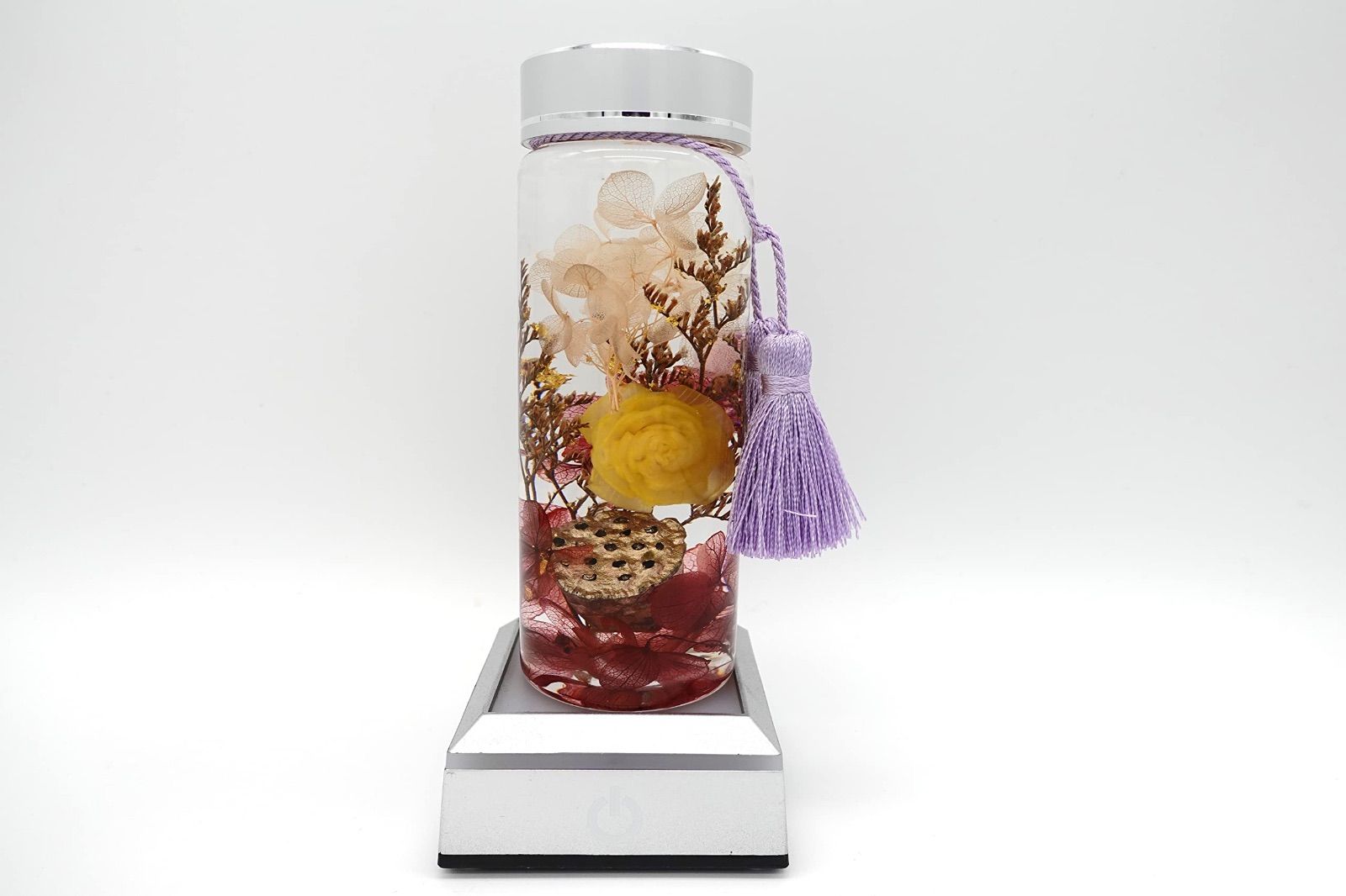 ハーバリウム円柱 金沢金箔黄 LEDライト付き