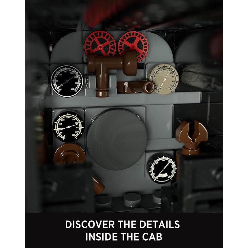 運転室の中をのぞいてみてください?印刷された計器やコントロールパネルが待っています。組み立てることは、本物の電車の小さな秘密を発見するような感覚です。