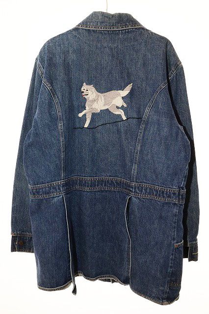 リーバイス Levi s オレンジタブ 刺繍 シベリアンハスキー カバーオール デニム ジャケット Gジャン ロング丈 インディゴ ブランド古着ベクトル 250927