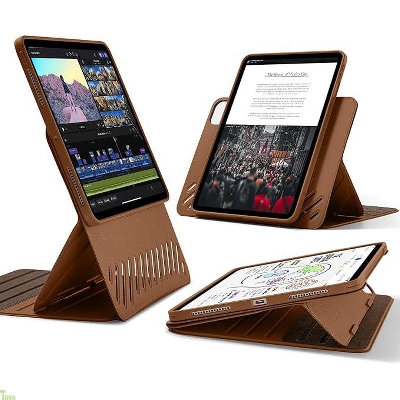 ESR iPad Pro 11インチ ケース M 5 4 2025 取外し なマグネットカバー付き回転式ケース 縦向き 横向きスタンド 6段階の角度調節 Pencil USB-C対応 Shiftシリーズ ブラウン a