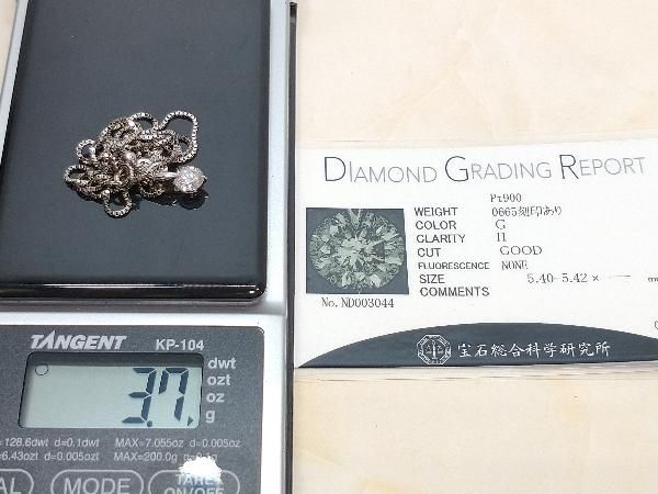 鑑定書付き Pt 900 850 一粒ダイヤモンド ペンダント ネックレス 0.665 ct 3.7 g スライドアジャスター44 cm プラチナ I 1 GOOD NONE