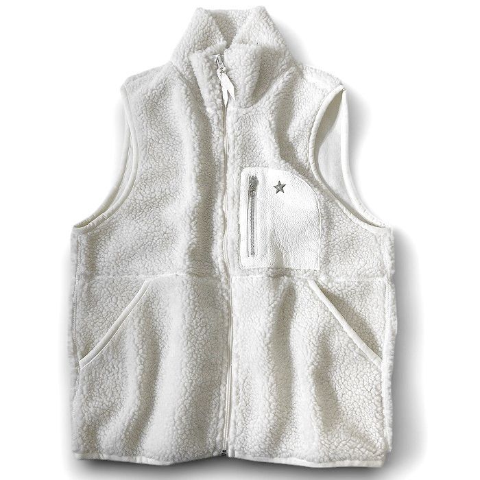 Schott N.Y.C. ショット LEATHER POCKET PILE VEST レザーポケット ワンスターリベット スタンドカラー ボアパイル ボアフリース ベスト 3112057 ホワイト ▲060▼41217w08