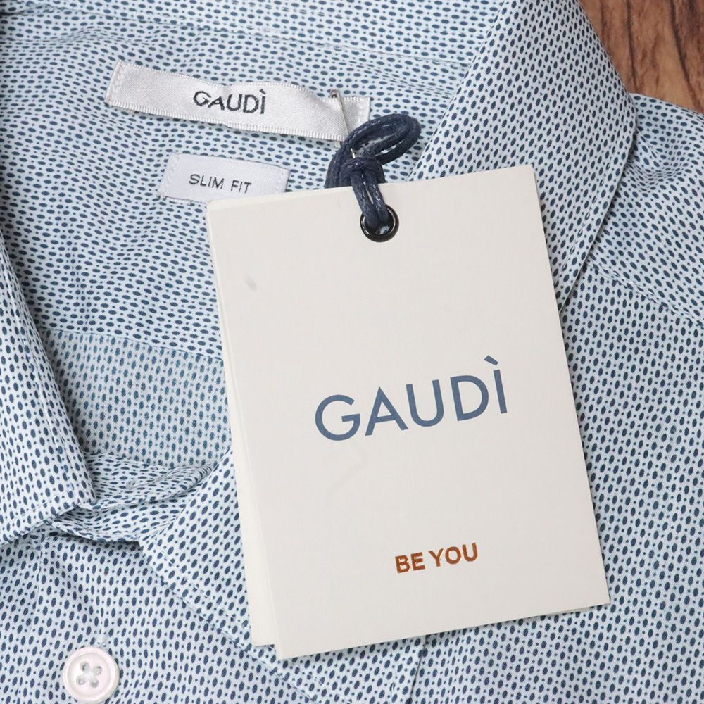 GAUDI Lサイズ 長袖シャツ 綿混 ストレッチ 総柄プリント おしゃれ 洗練 インポート メンズ 紳士 ガウディ 青緑 グリーン mc 309