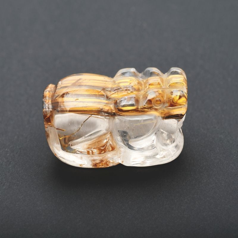 美しいブロンズ針の艶が豊かさを象徴 1点物 ゴールド タイガールチル クォーツ 貔貅 ヒキュウ GHHKU 2 3 g蓄財 金運祈願 運気アップ 財運 商売 盛 昇運 お守り ご褒美 パーツ 貫通穴あり 京海堂 天然石の卸 京の蔵