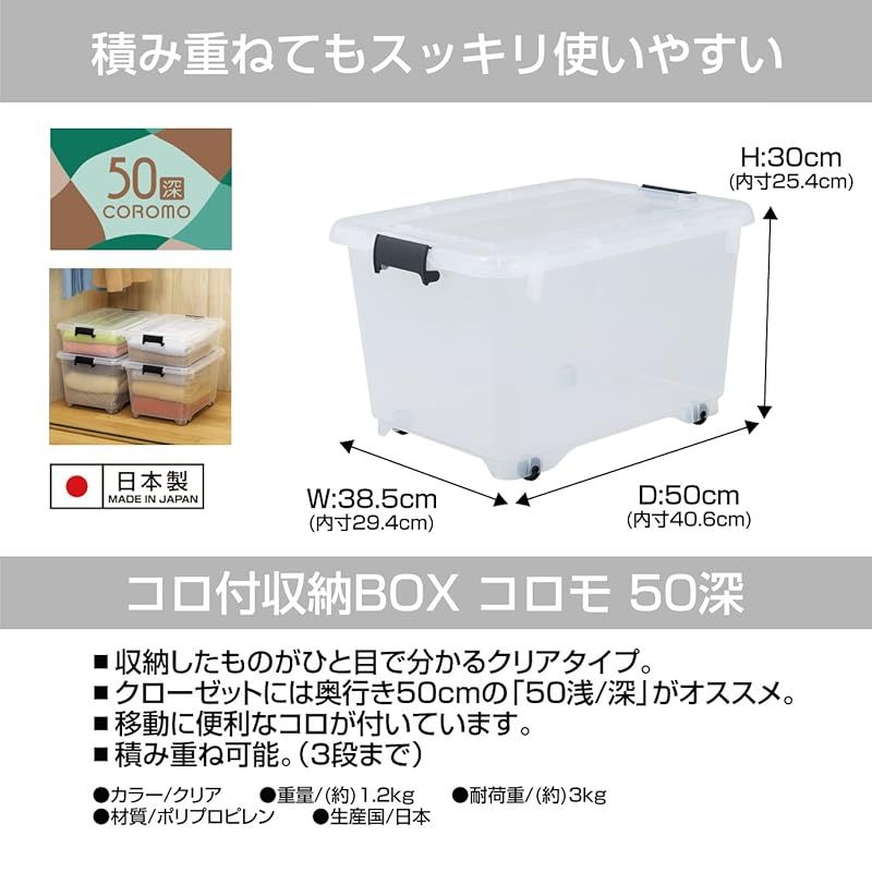 JEJアステージ JEJ Astage 収納ボックス 衣類収納 コロモ深型 奥行50 cmタイプ クリア フタ コロ付き クローゼット 押入れ 幅38 高さ30 cm セット 1