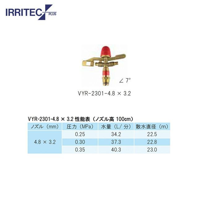 ●ノズル4.8x3.2mm:圧力(MPa)|水量(L/分)|散水直径(m)