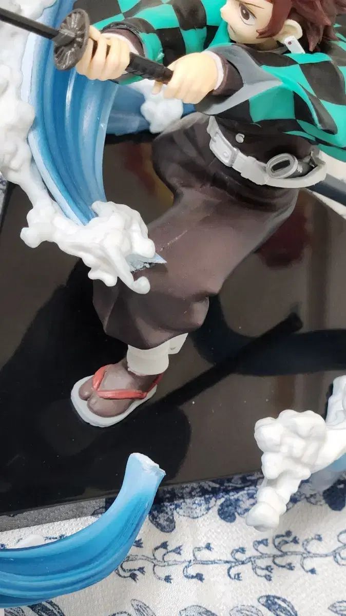 鬼滅の刃 竈門 炭治郎 フィギュアです。 筆で埃を払って展示しておりましたが、本棚整理の過程で本棚→机の上に落としてしまい、水エフェクト部分が破損してしまいました。 しかし? 様々な姿で展示できるので、むしろ良い?とも思われます?