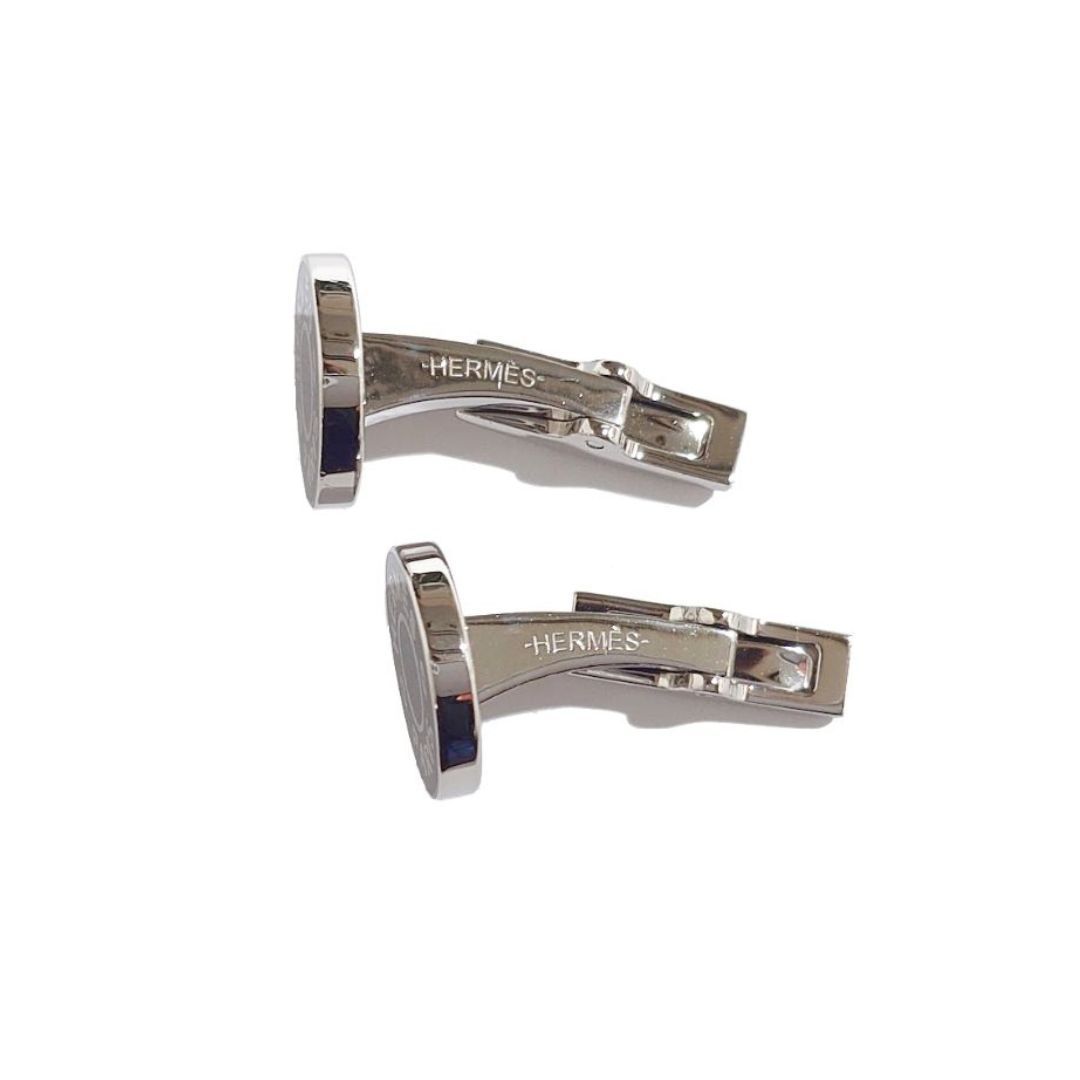 「HERMES エルメス リコル 2 カフリンクス カフスボタン カフス スウィヴル式 ブラック 黒 シルバー H052056FP03」です。